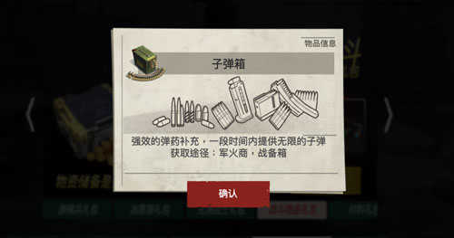 强效的弹药补充,一段时间内提供无限的子弹且不用更换弹匣,简直是战场BUG般的存在。在面对拥有极高血量僵尸或者BOSS战时,能给角色提供火力保障。