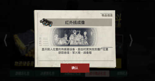 通过热成像技术,直接显示敌人位置的传感器设备。一般在狙击玩法中使用,能更快找到僵尸位置,进行有效狙击。