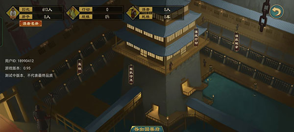 监狱:禁狱里面是被我方灭国势力的大臣或者君主,可对其招募,释放,或者处死【加三点君威】,罢免朝臣,朝臣会进入天牢枢机守卫:属于谍战玩法的一种,一共四个选择,