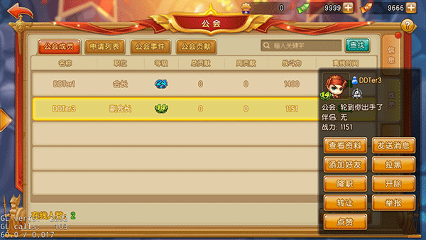 会长享有如截图所示的权限。以及给公会成员分配权限的权利。