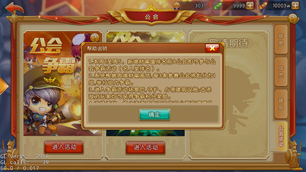 每周六 20:00 开启,符合要求的成员可在“公会活动”中点击进入活动。达到指定的公会争霸积分可以领取相应的争霸奖励。