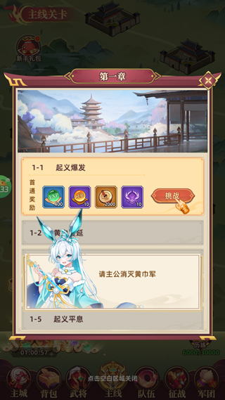 3、游戏开始前会有个新手教程,跟随引导操作,点击主线;