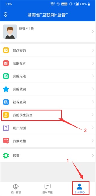 2、打开APP的“民生资金”。