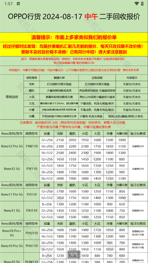 3、选择好之后点进去,可以看到该品牌不同型号的手机报价;