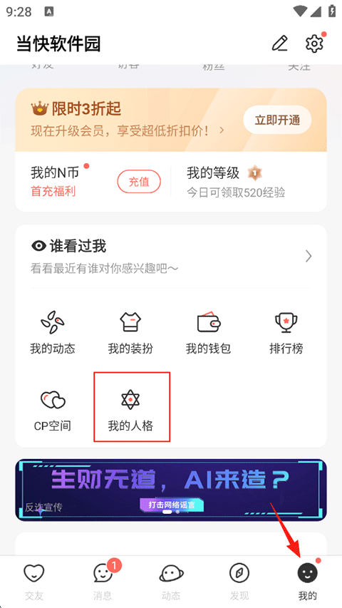 1、打开Nico App,点击我的-我的人格。