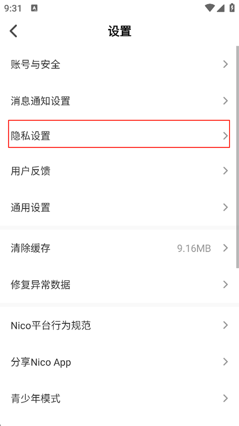 2、选择隐私设置。