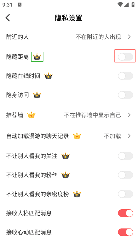 3、开启隐藏距离,注:此项功能为会员用户专属服务。