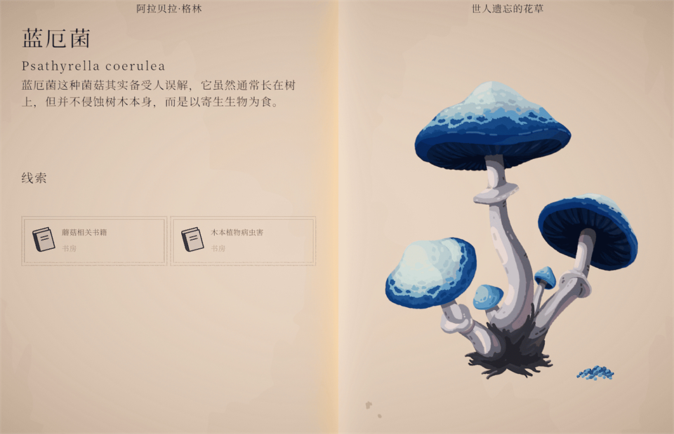 成就:【蓝厄菌】将蓝厄菌幼苗放在正厅被根部寄生植物附身的大树下面,让食肉蘑菇摄食寄生植物。