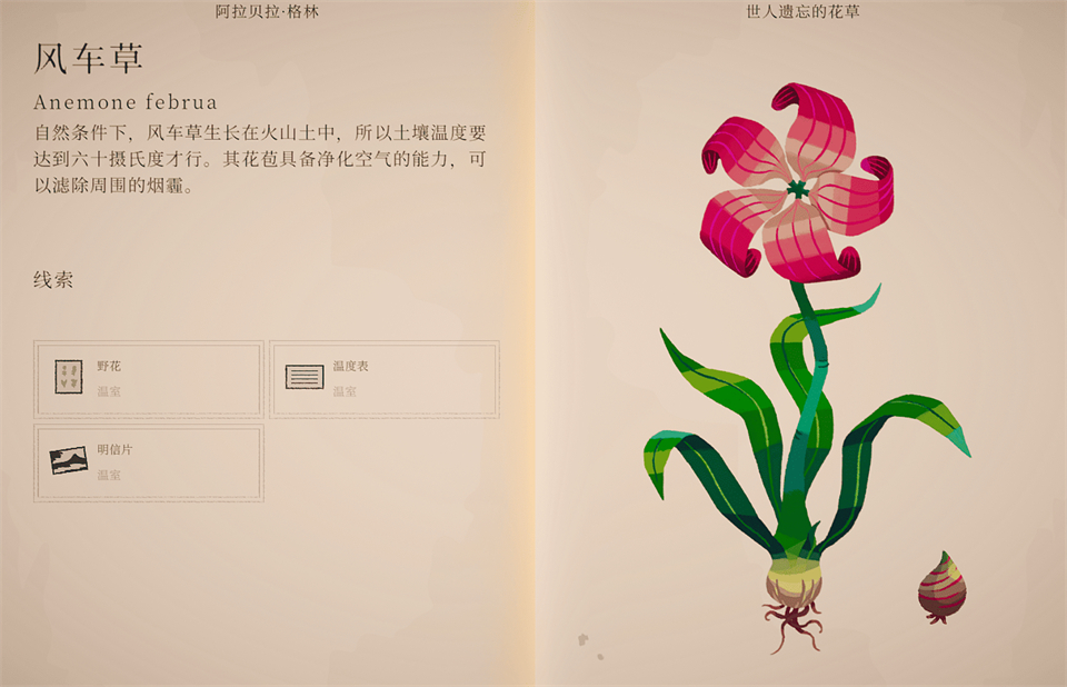 波坦尼庄园是一款第一人称探索解谜游戏,背景设定在19世纪英格兰的维多利亚时代。你将扮演退休植物学家阿拉贝拉·葛林,在一座静谧复古的庄园中,通过探索环境、收集线索,研究并培育各种被遗忘的稀有植物,完成她的植物学专著《世人遗忘的小花》!