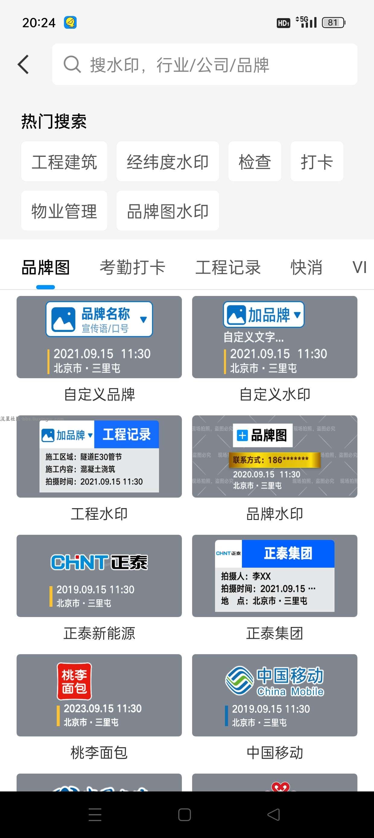 *工程水印: 项目巡检、物资采购、材料验收、劳务用工等工程专属模板