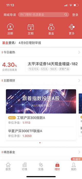 1、进入软件用户可以在主页看到太平洋研究、基金定投、智能客服等服务;