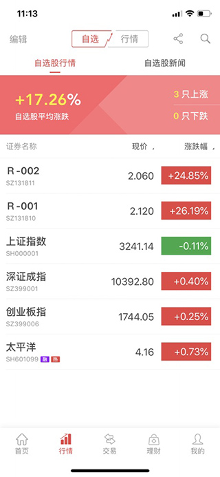 2、行情板块当中支持查看自选股以及自选股相关的新闻,了解自选股的走向;