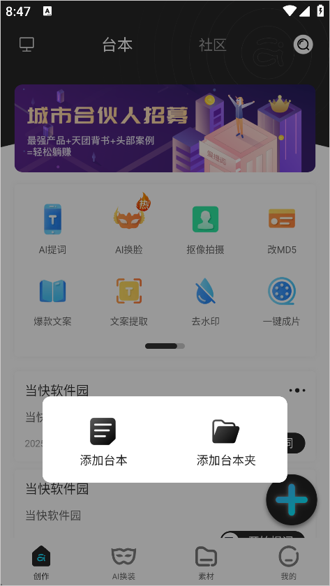 1、打开提词器爱提词App,进入到App首页,点击“+”即可创建台词;