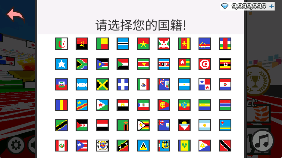 1、打开速度之星手游后,先选择自己喜欢的国旗,并为角色输入昵称,让你的选手独一无二。