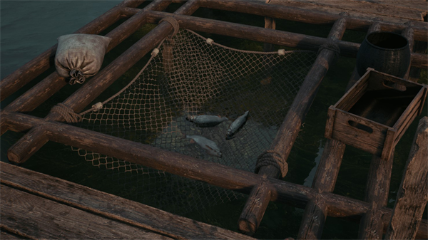 网捕鱼 — 将鱼饵放入网中,设置好,然后等待捕获。