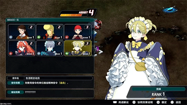 3、通过击坠敌人,我们可以积累“辅助计数”,然后消耗该点数可以让辅助角色发动多种技能效果,包括HP/EN回复、提升输出火力、侦查敌方全体等等。
